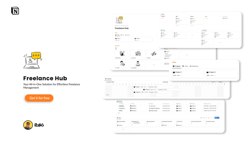 Are you a freelancer looking to streamline your workflow, boost productivity, and stay on top of your projects with ease? Look no further than our Freelancer Hub Notion Template!